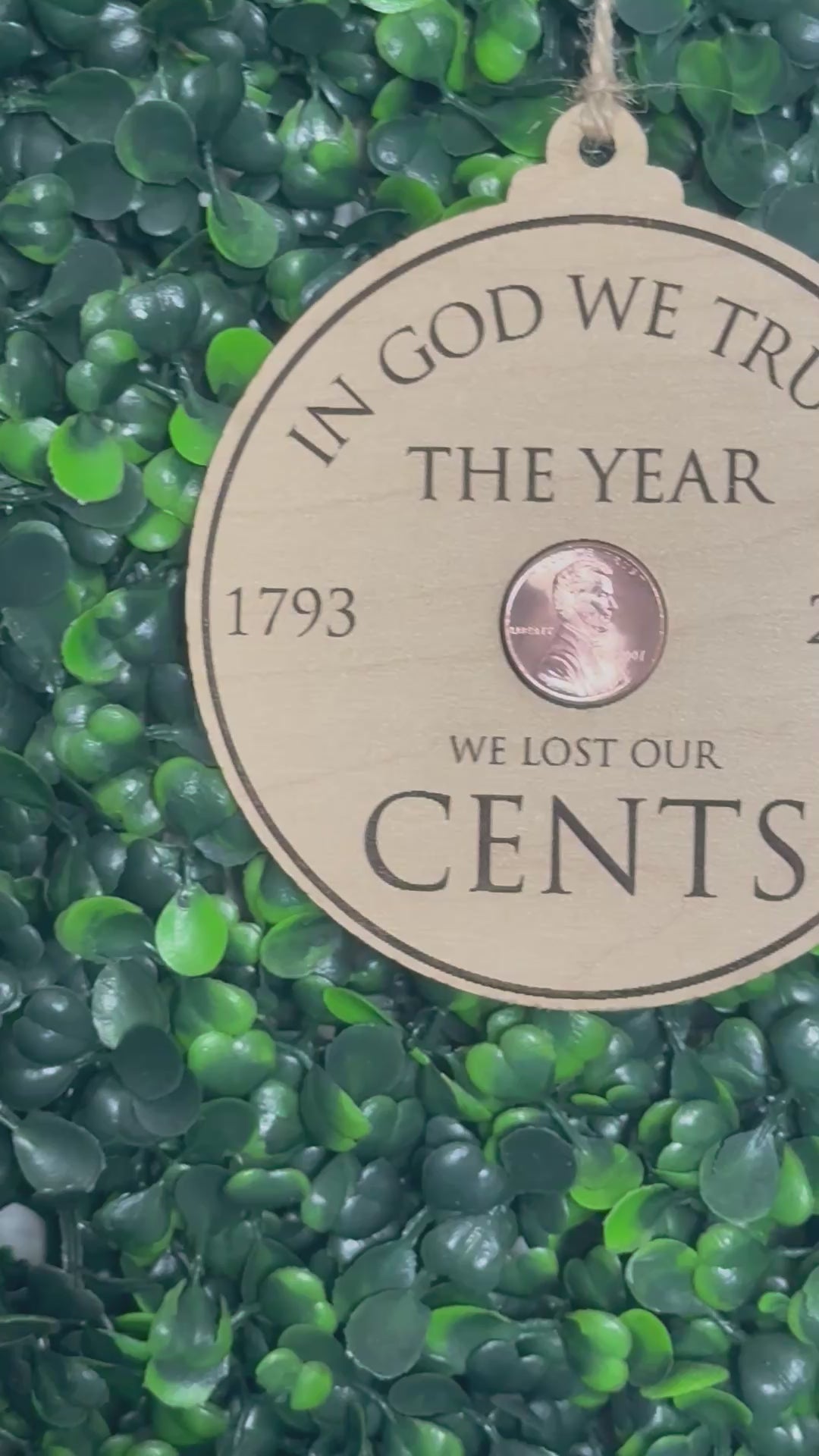 Handcrafted ornament commemorating the end of the U.S. penny, featuring a real penny. Beautifully engraved with the phrase “In God We Trust – The Year We Lost Our Cents” and the historic dates 1793–2025, this piece is a unique keepsake with timeless character.